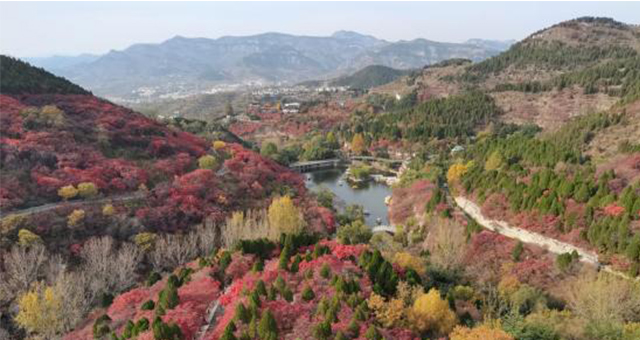 紅葉谷位于濟南歷城區錦繡川水庫南三公里處,是濟南泉水的主要涵養補給地,其特殊的地形地貌和豐富的森林資源,使之形成了獨特的山地氣候。紅葉谷景區植被覆蓋率較高,區內有絢秋湖丶天趣苑、朱老庵、蔓園、水趣苑、萬葉塔等景點,種植了杏梅、紅梅、白梅、綠梅、櫻李梅、臘梅、金絲梅、美人梅等花種,是2002年的“山東十大新景點”,并于2003年被評為首批國家4A級旅游風景區。